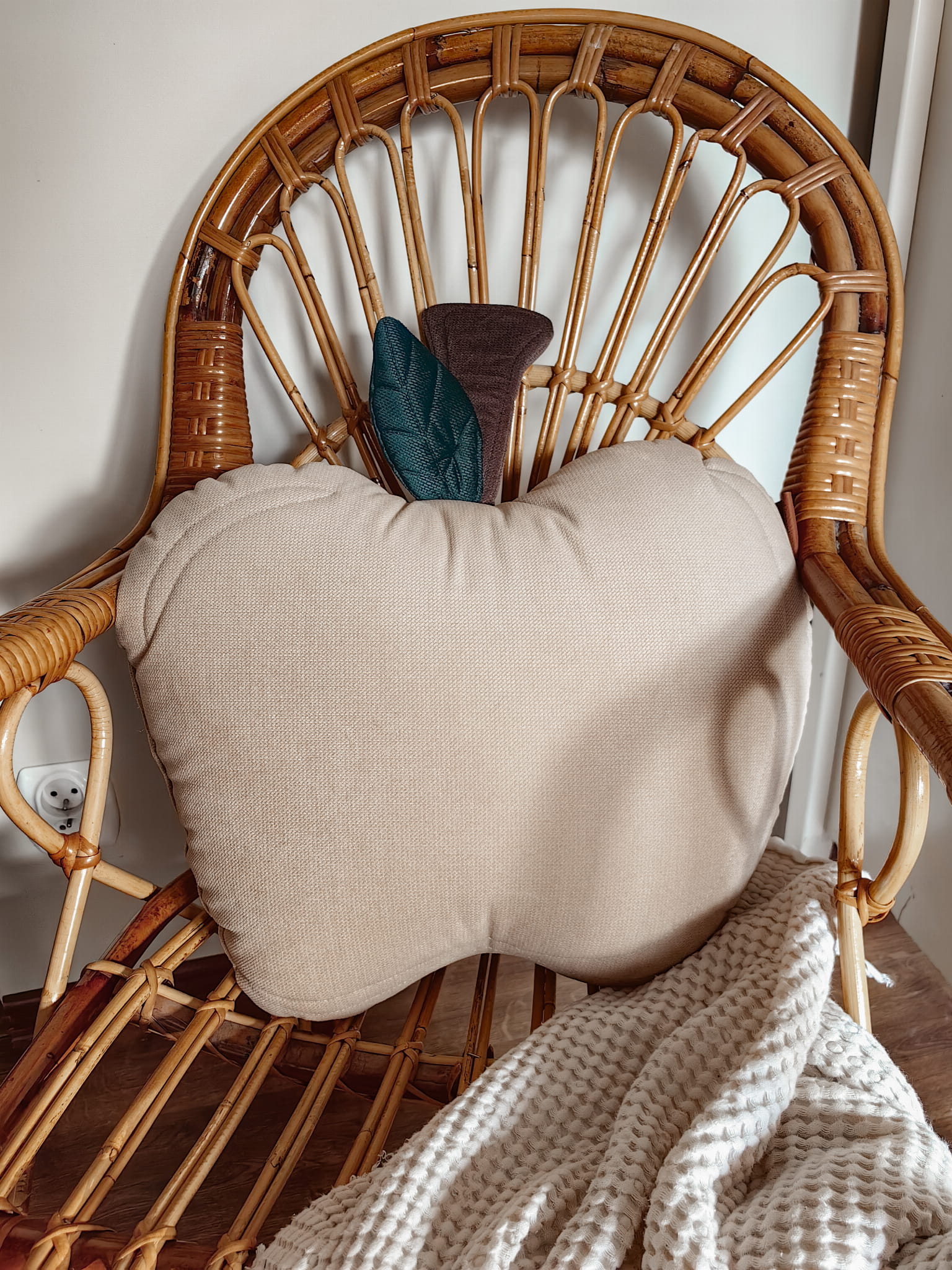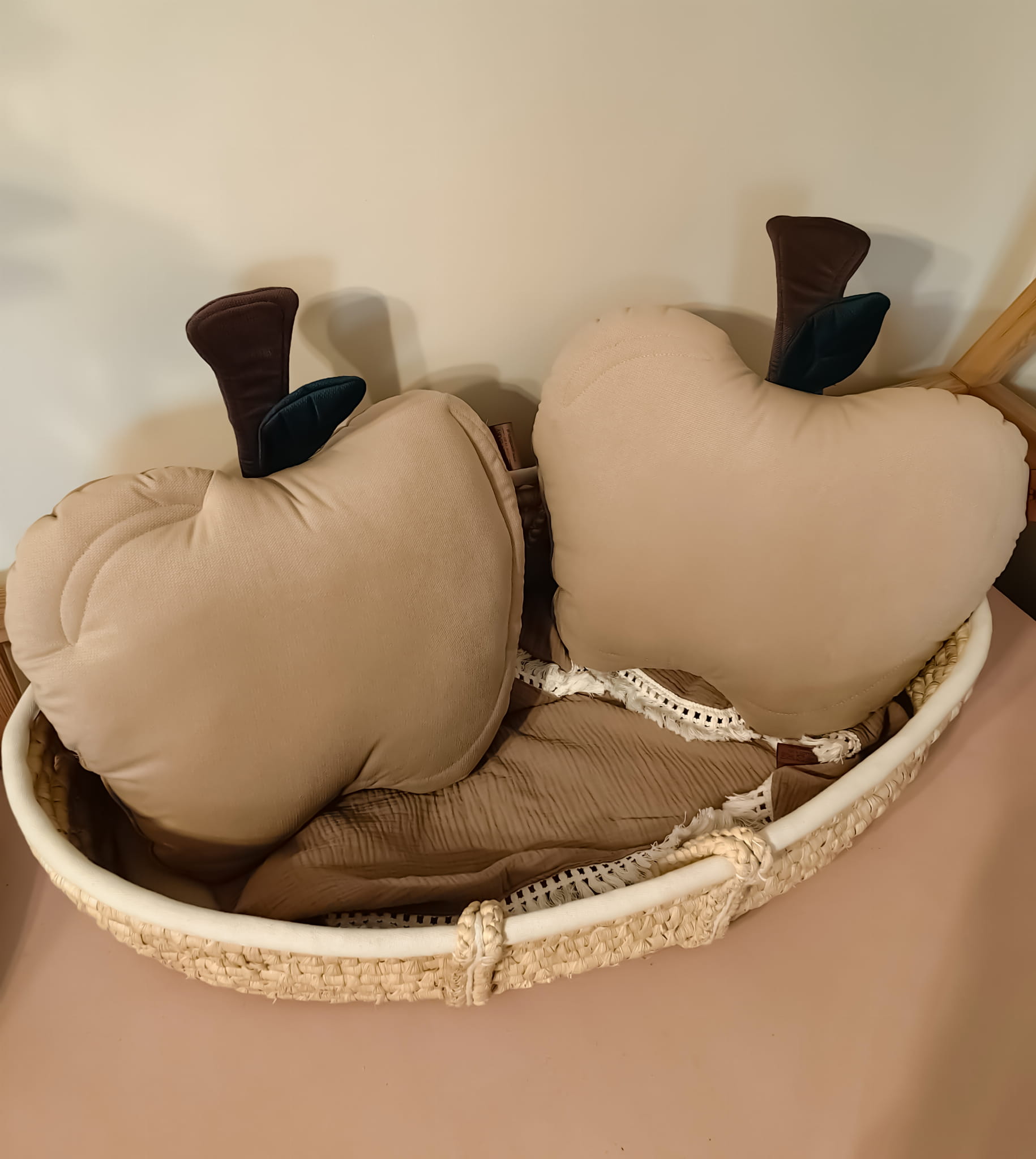 Duża, ozdobna poduszka w kształcie jabłka, pasuje do pokoju dziecięcego jak i pokoju dziennego. Jest to ładna ozdoba każdej kanapy, łóżeczka dziecięcego oraz sypialni rodziców. Poduszka świetnie sprawdzi się jako prezent.