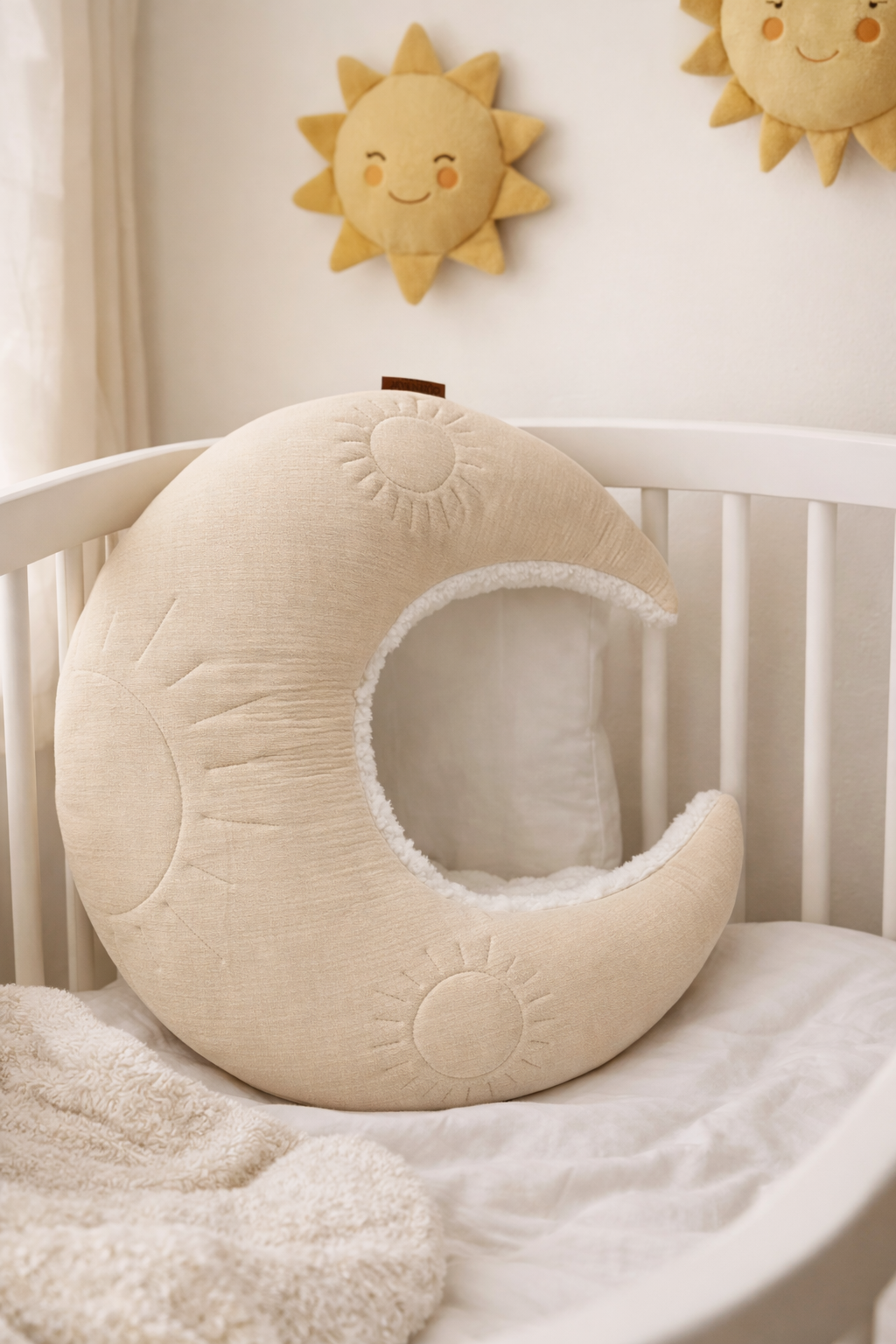 - Poduszka w kształcie księżyca to urocza ozdobna dziecięcego pokoju.