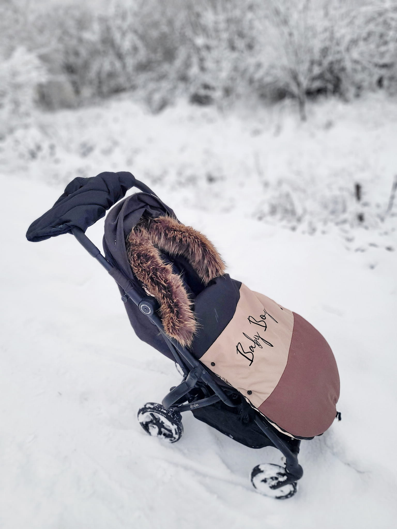 śpiworek do wózka zimowy dla chłopca 90 cm 0-18 miesięcy (śpiworek dla chłopca czarny-beżowy-brązowy) z futrem