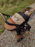 Śpiworek ma z tyłu podłużne otwory na pasy, pasuje do wszystkich wózków między innymi do cybex.